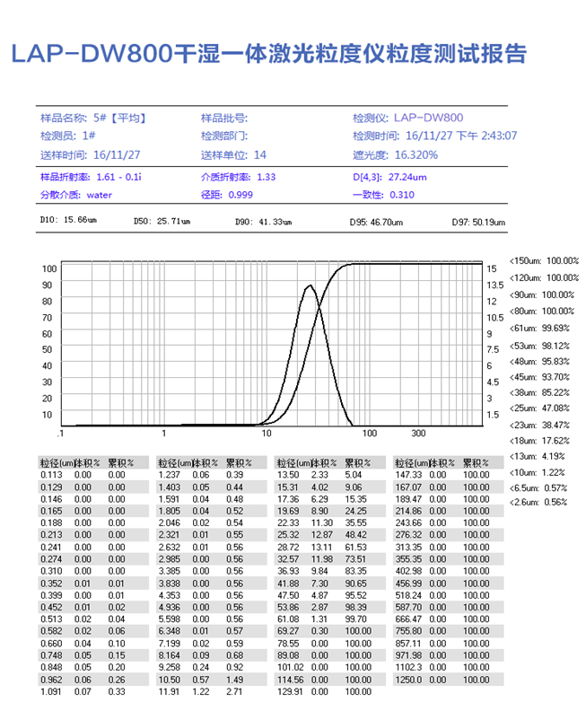 LAP-DW800是我公司傾力研發(fā)的新產(chǎn)品,自上市以來贏得了廣大客戶的一致好評。LAP-DW800采用先進(jìn)的Mie式散射原理和匯聚光傅立葉變換光路。